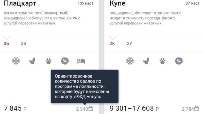 Сколько заплатите за дорогу, зависит от типа вагона и срока покупки, например, за два дня до выезда цена будет следующей: