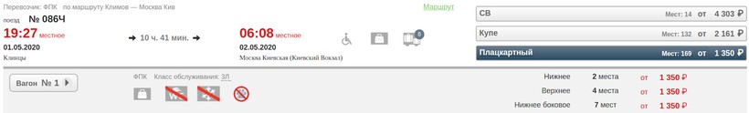 Актуальные цены и расписание поезда Клинцы — Москва, стоимость и информация о наличии билетов на скорые поезда АО «ФПК».