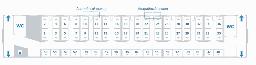 купе — 36 мест (по 4 в каждом купе), индивидуальная подсветка, биотуалеты;
