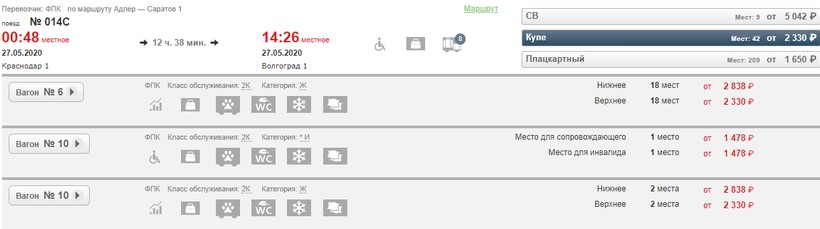 плацкарт — 1650 ₽;