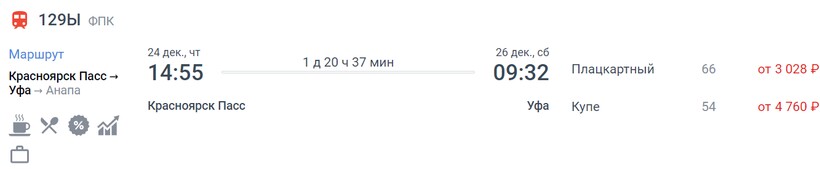 Актуальные цены и расписание поезда Красноярск — Уфа, стоимость и информация о наличии билетов на скорые поезда АО «ФПК».