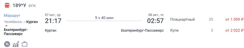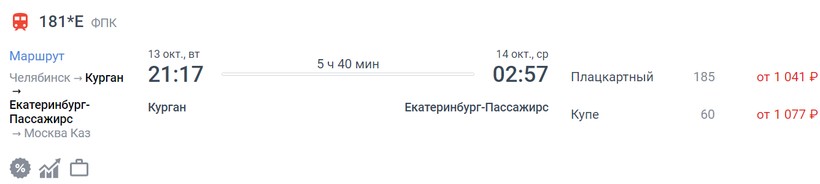 На октябрь-ноябрь минимальная стоимость билета в Екатеринбург составляет 457 (поезд 849Е, Сидячий), а максимальная — 4325 (поезд 303Ц, Люкс).