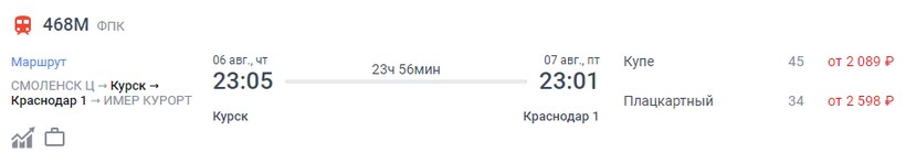 Проводники качественно работают, общаются вежливо и корректно, быстро приносят заказы, вовремя убирают в санузлах. Билет в купейный вагон за месяц до выезда может стоить дешевле, чем в плацкартный. Его цена стартует от 2089 руб., поездка в плацкарте обойдется в 2598 рублей. Учтите, что ближе к дате выезда цены могут меняться.