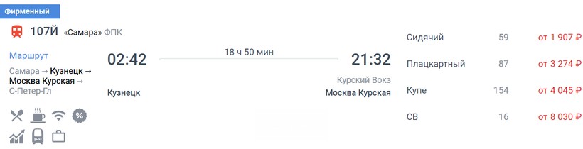 Актуальные цены и расписание поезда Кузнецк — Москва, стоимость и информация о наличии билетов на скорые поезда АО «ФПК».