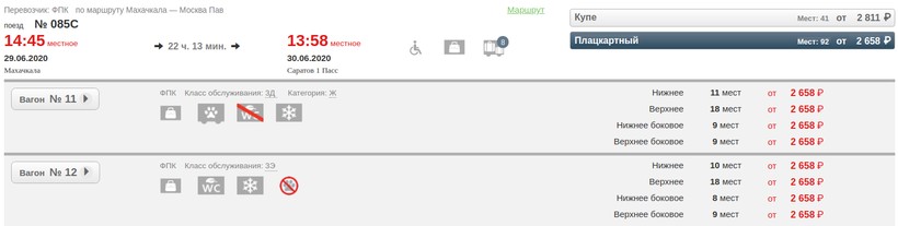 Актуальные цены и расписание поезда Махачкала — Саратов, стоимость и информация о наличии билетов на пассажирские и скорые поезда АО «ФПК».