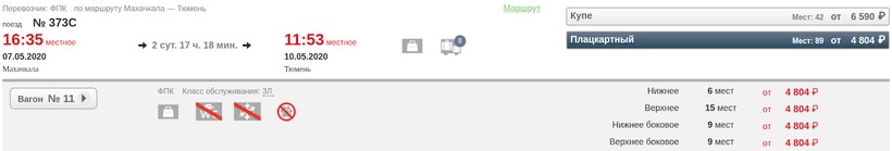 Актуальные цены и расписание поезда Махачкала — Тюмень, стоимость и информация о наличии билетов на пассажирские поезда АО «ФПК».