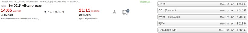 Цены на проезд динамические (кроме плацкартных вагонов). Лучше покупать билеты заранее в целях экономии. Приведу пример стоимости (за 5 недель до выезда) на поезд № 001И «Волгоград»: