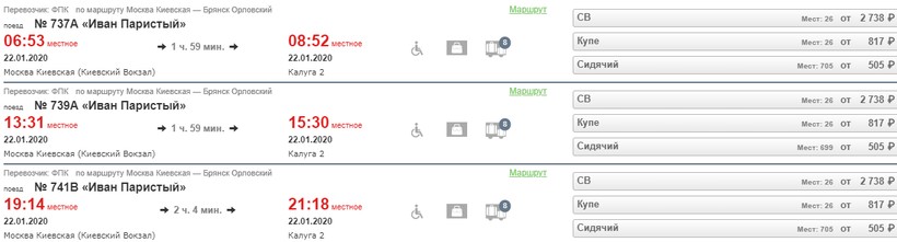 Расписание жд поездов Москва — Калуга на каждый день, цены на билеты и информация о наличии мест на поезда.