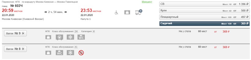 Стоимость проезда в сидячем вагоне начинается от 369 рублей, плацкарт стоит минимум 497 рублей. Не вижу необходимости заранее брать билеты, потому что динамическое ценообразование отсутствует. Также есть два неплохих варианта чуть подороже, но они, на мой взгляд, имеют более удачное расписание. Состав № 107М уезжает вечером (17:17), приедет спустя 2 часа 19 минут (19:36). Можно будет спокойно уехать на автобусах или маршрутках в любой район Калуги. Второй поезд (№ 131М) утренний. Он отправляется в 09:41, прибудет после полудня (12:20).