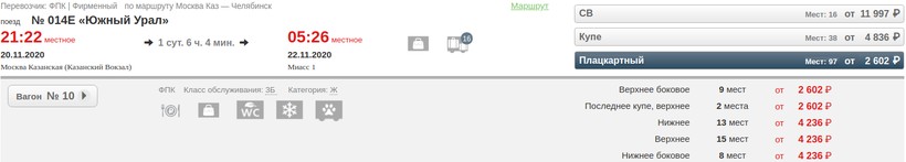 Актуальные цены и расписание поезда Москва — Миасс, стоимость и информация о наличии билетов на пассажирские и скорые фирменные поезда АО «ФПК».