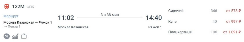 Актуальные цены и расписание поезда Москва — Ряжск, стоимость и информация о наличии билетов на скорые и пассажирские поезда АО «ФПК».