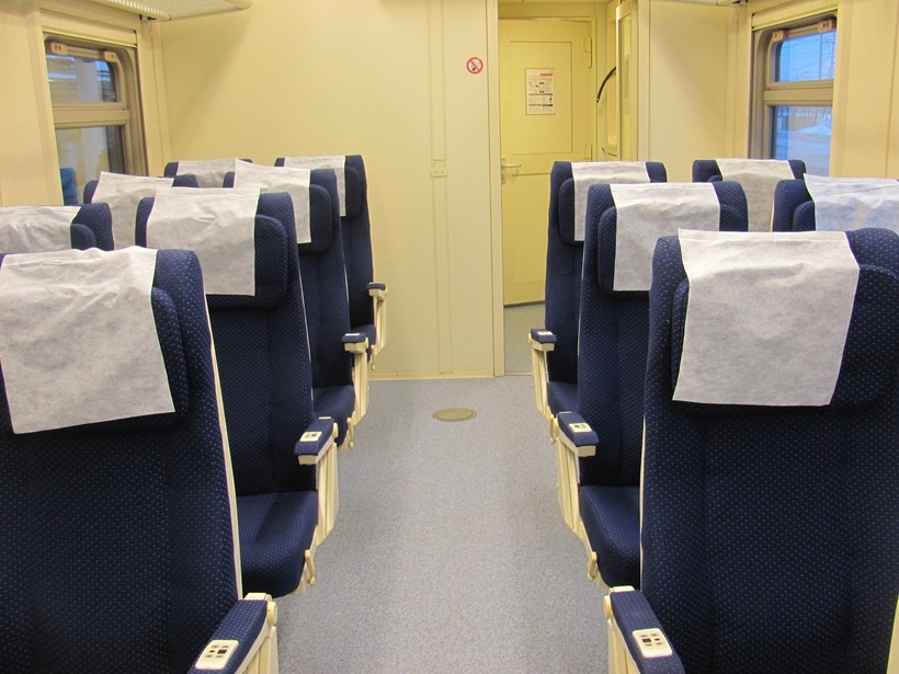 Первый поезд имеет вагоны с мягкими сидячими местами — отличная замена плацкарту, ведь ехать недолго, можно сэкономить. В наличии индивидуальные столики, есть горячая вода. В туалетах есть все необходимое: бумага, мыло, освежитель воздуха, в салоне чисто. Есть места для людей с ограниченными физическими возможностями.
