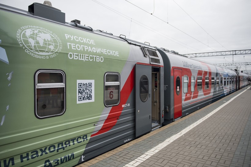 Минимальная стоимость билета в плацкарт за месяц до выезда — 7611 ₽, в купе — 10529 ₽ (динамические цены). Выезд в районе обеда — 13:10, не нужно рано просыпаться, чтобы успеть к отправлению. Прибытие — 14:20, в пути 3 д. 20 ч. 10 мин. Курсирует через день. Неплохой сервис, биотуалеты и рабочие кондиционеры. Есть возможность принять душ (в некоторых вагонах и за отдельную плату), что уместно в длительной поездке. Питание включено, можно заказать в купе или пойти в вагон-ресторан. Розеток не много, в купе — только в коридоре.