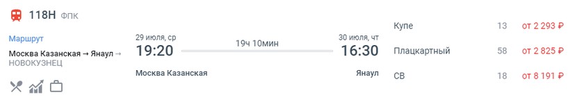 Данный состав подойдет для тех, кому нужно уехать сразу по завершению рабочего/учебного дня. Выезд — 19:20, прибытие — 16:30/15:32/16:38. Минимум в дороге — 19 ч. 10 мин. Ходит через день. Поездка проходит в комфортабельных новых вагонах. Санузлы все био, в вагонах не жарко (летом прохладно, зимой неплохо топят), розетки расположены в шаговой доступности (в каждом отсеке под столом). В купейных и спальных вагонах есть несколько дополнительных опций: