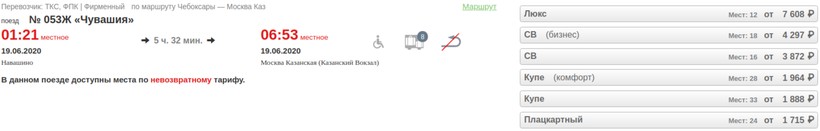 Цены на билеты динамические, меняются в зависимости от спроса. Покупайте проездные документы хотя бы за месяц до отправления. Приведу пример стоимости на состав № 053Ж «Чувашия» за такой период времени: