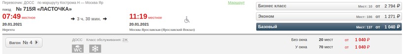 Ехать придется от 3,5 до 5 часов, расстояние — 300 км с лишним. Отправляются составы с ж/д станции Нерехты, прибывают — на Ярославский вокзал Москвы.