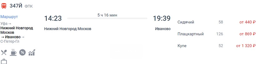 Актуальные цены и расписание поезда Нижний Новгород — Иваново, стоимость и информация о наличии билетов на пассажирские поезда АО «ФПК».