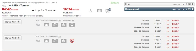 плацкарт — 4851 ₽;