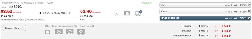 плацкарт — 3561 рубль;
