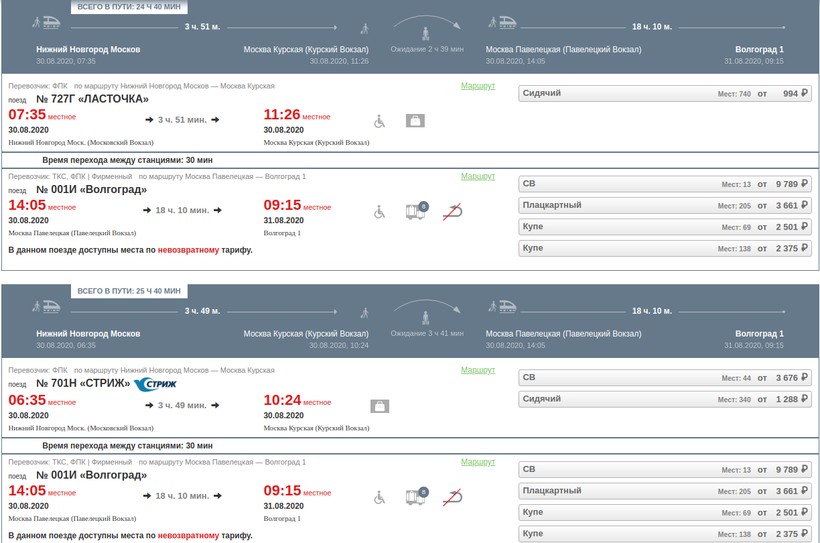 Актуальные цены и расписание поезда Нижний Новгород — Волгоград, стоимость и информация о наличии билетов на пассажирские поезда АО «ФПК».