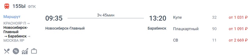Актуальные расписание поездов Новосибирск — Барабинск, стоимость жд билетов и информация о наличии билетов на скорые и скорые фирменные поезда АО «ФПК».