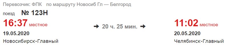 Между городами 1425 км. Отправление со станции Новосибирск-Главный, прибытие на вокзал Челябинск-Главный.