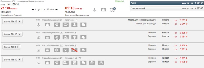 обойдется в 4093 ₽, а в купе — 5161 ₽.