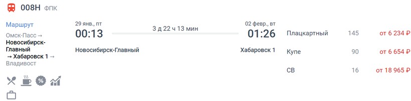 Актуальные цены и расписание поезда Новосибирск — Хабаровск, стоимость и информация о наличии билетов на скорые поезда АО «ФПК».