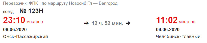 Выезд со станции Омск-Пассажирский, прибытие на ж/д вокзал Челябинск-Главный.