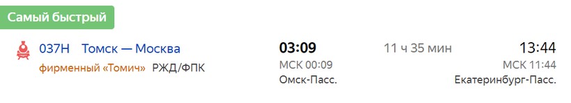 № 037Н — самый быстрый вариант поездки, в отдельные дни домчит за 11 ч. 35 мин.;