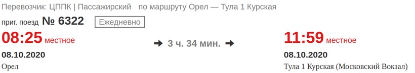 Актуальные цены и расписание поезда Орел — Тула, стоимость и информация о наличии билетов на скорые, скоростные и скорые фирменные поезда АО «ФПК».