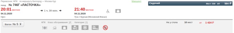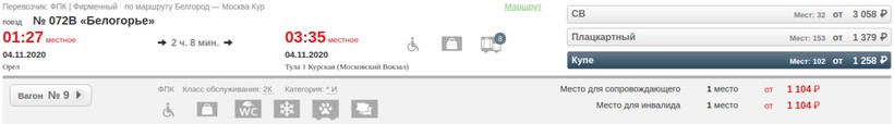 Приведу пример расценок на состав № 072В «Белогорье» за 4 недели до путешествия: