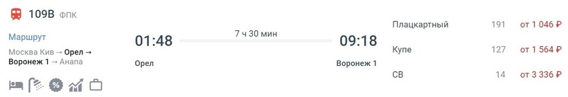 Актуальные цены и расписание поезда Орел — Воронеж, стоимость и информация о наличии билетов на скорые поезда АО «ФПК».