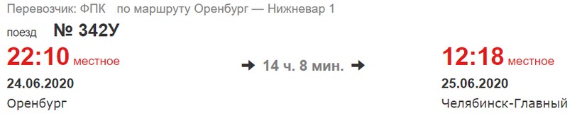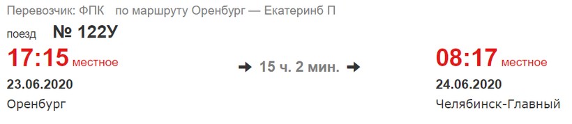 Отбытие с ж/д вокзала в Оренбурге, прибытие на вокзал Челябинск-Главный.