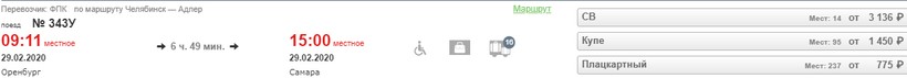 Актуальные цены и расписание поезда Оренбург — Самара, стоимость и информация о наличии билетов на скорые поезда АО «ФПК».