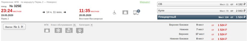 Купе — самые комфортабельные, предоставляется ряд дополнительных услуг (дорожные наборы, пресса), есть разделение мест по гендерному признаку, специально оборудованные места для людей с инвалидностью. Учтите, что в плацкартных вагонах узкие проходы, с крупногабаритными сумками будет тяжело, лучше сдавайте вещи в багажное купе. В поезде плохая шумоизоляция, немного шатает последние вагоны.