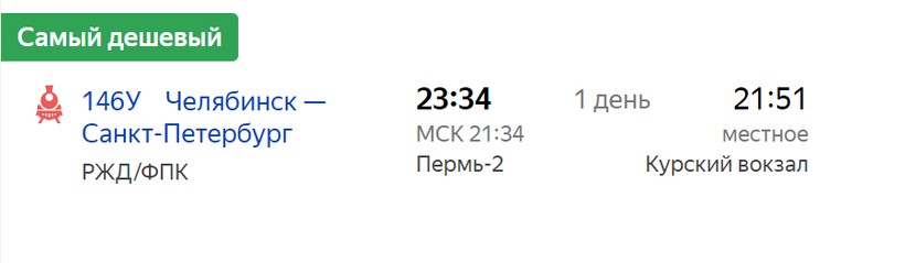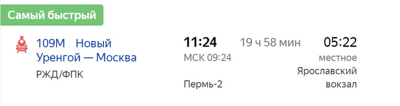 из Перми в 11:35, прибытие — 05:52, в аккурат
