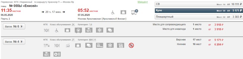 Если покупать билет за месяц до выезда, то проезд в плацкарте обойдется в 3383 ₽, в купе — 5171 ₽, СВ — 10111 ₽.
