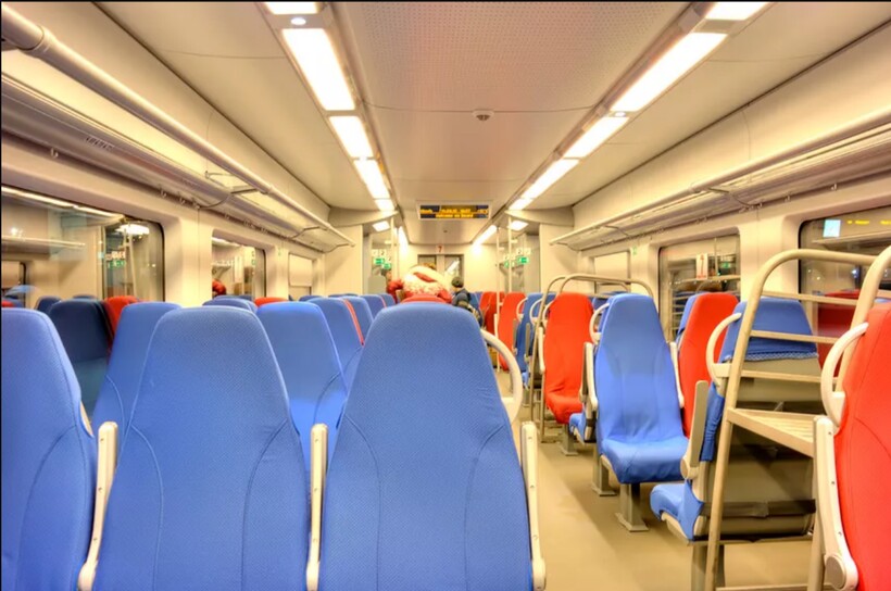 В состав поезда входят только вагоны с местами для сидения. Внутри довольно просторно, проходы между рядами широкие. Двери в вагоны открываются сразу в салон, без проблем можно занести большой чемодан, посадка проходит быстро. Персонал профессионально выполняет свою работу, помогает с вещами. Вагоны оснащены дополнительными ступеньками, выдвигающимися автоматически, что упрощает посадку на станциях с низкими платформами. Кресла удобные, хватает места для ног. Предусмотрены специальные тумбы для багажа, в некоторых вагонах имеются кулеры с водой. Есть розетки, проблем с подзарядкой мобильных устройств не возникает. Над окнами установлены полки для небольших вещей (сумок, рюкзаков). Только в некоторых вагонах разрешено перевозить домашних животных, будьте внимательны при покупке билета. Есть специальные места для людей с инвалидностью.