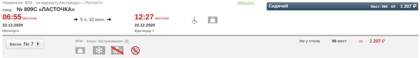 Добраться до пункта назначения можно от 5,5 часа до практически 11 часов, в зависимости от выбранного рейса. Проблем с выездом у меня никогда не возникало, есть ежедневный рейс. Составы отправляются с ж/д станции Пятигорска, прибывают — на вокзал Краснодар-1.