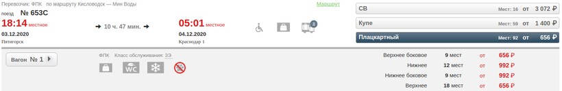 На октябрь-ноябрь минимальная стоимость билета в Краснодар составляет 753 (поезд 653С, Плацкарт), а максимальная — 4824 (поезд 653С, Люкс).