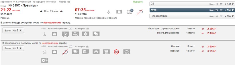 Стоимость билетов в последние два типа вагонов может измениться ближе к дате выезда (динамическое ценообразование), на это влияет количество свободных мест и популярность маршрута. Покупайте проездные минимум за 4 недели до отправления, таким образом сможете сэкономить.
