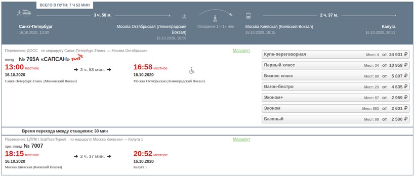 Актуальные цены и расписание поезда Санкт-Петербург — Калуга, стоимость и информация о наличии билетов на скорые поезда АО «ФПК».