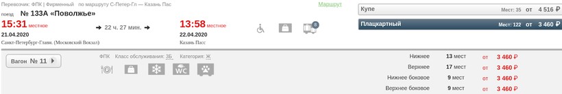 При расчете стоимости билетов на фирменный поезд № 133А применяется программа динамического ценообразования. Советую заранее покупать проездные, так можно сэкономить и выбрать желаемое место. Я оформляю билеты как минимум за месяц до путешествия, тогда цена следующая: