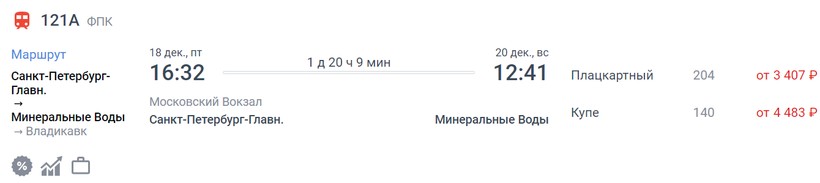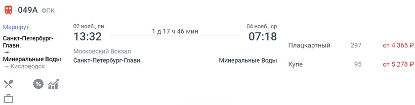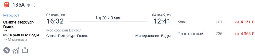Актуальные цены и расписание поезда Санкт-Петербург — Минеральные воды, стоимость и информация о наличии билетов на скорые поезда АО «ФПК».