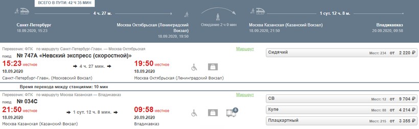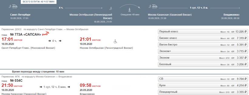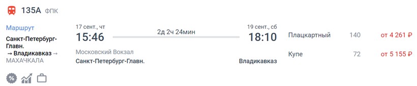 Актуальные расписание поездов Санкт-Петербург — Владикавказ, стоимость жд билетов и информация о наличии билетов на скорые поезда АО «ФПК».