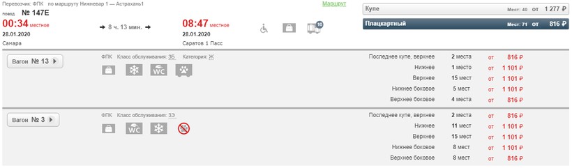 По классификации РЖД поезд № 147Е — скорый, он позволяет напрямую доехать до Саратова на протяжении целого года. Отправление — 00:34, прибывает — 08:47. В дороге — 8 ч. 13 мин.
