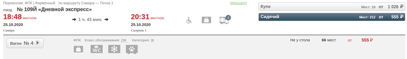 № 6565. Выезд в 14:39, приезд — в 17:08. Идеальный расклад для тех, кто не любит рано вставать.