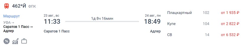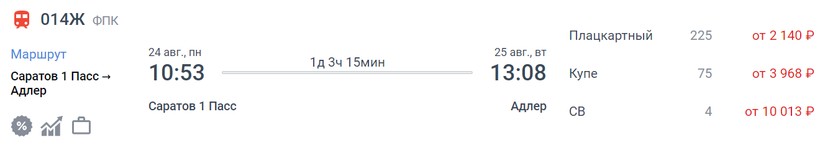 Актуальные цены и расписание поезда Саратов — Адлер, стоимость и информация о наличии билетов на пассажирские и скорые поезда АО «ФПК».