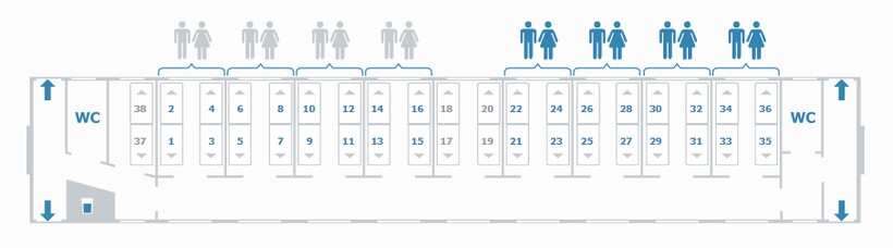 купейные — индивидуальная подсветка, предусмотрены места для пассажиров с инвалидностью, а также мужские и женские купе;